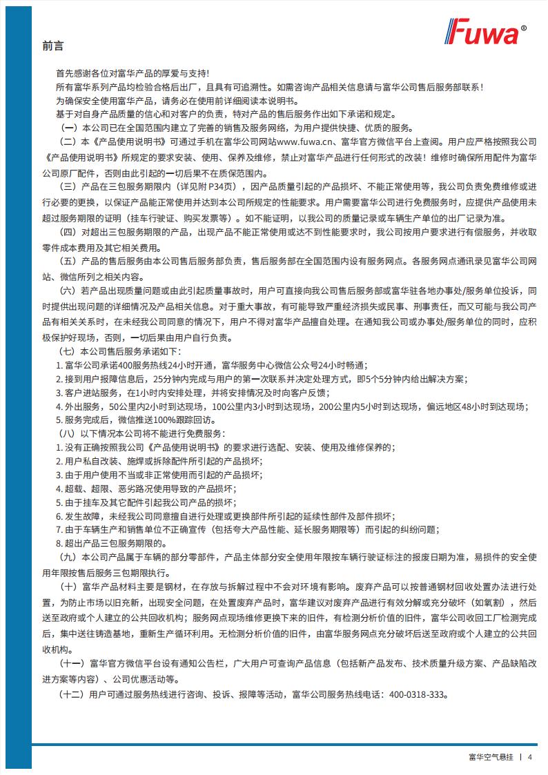 富華空氣懸掛【產(chǎn)品使用說(shuō)明書(shū)】