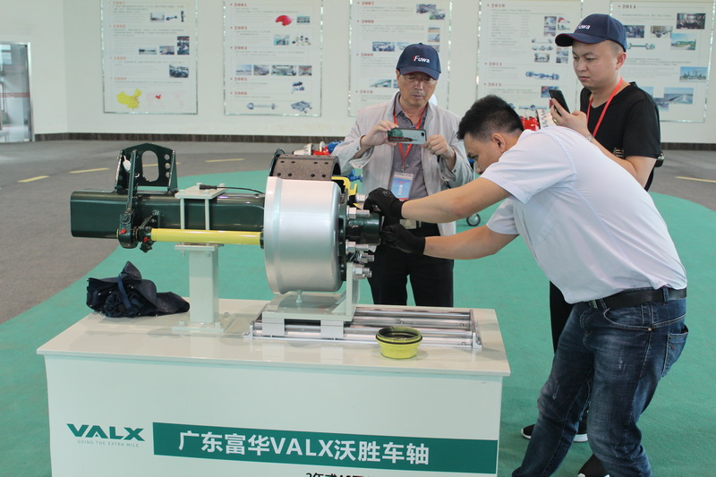 在富華產(chǎn)品展示廳,富華的銷(xiāo)售團(tuán)隊(duì)向來(lái)賓們?cè)敿?xì)介紹了沃勝VALX車(chē)軸以及空氣懸掛等產(chǎn)品,并在現(xiàn)場(chǎng)對(duì)沃勝VALX車(chē)軸的輪轂系統(tǒng)進(jìn)行拆裝演示。