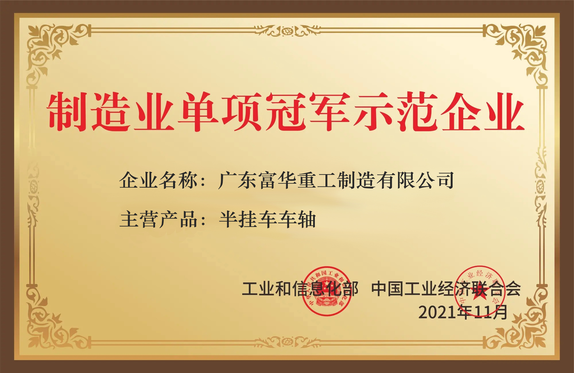富華重工“掛車車軸”榮獲國家工信部制造業(yè)單項冠軍稱號